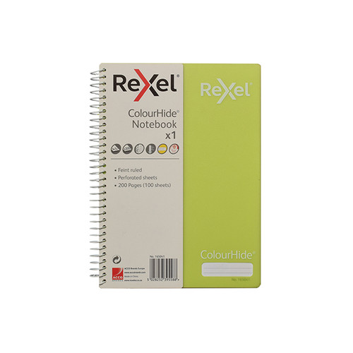 REXEL Rexel ColourHide A4 Notebook Lime R87.40 ColourHide A4 Notebook Spiral bound 120 page feint ruled Perforated sheets Tear out memory joggers Add to Cart