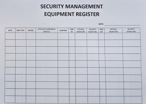 Security Management Equipment Register - 200 Page - A4 Landscape